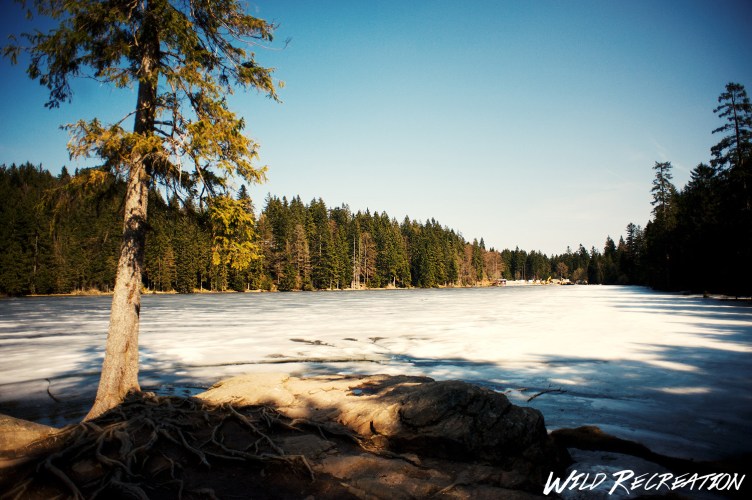 Die Stämme liegen dicht aneinander. Pendeln von rechts nach links im Rhythmus der Wellen. In der Mitte des Großen Arbersees ziehen rund 20 schwimmende Baumstämme eine Grenze zwischen Naturschutzgebiet und Tourismusattraktion. Sie trennt im Sommer Tretbootfahrer von Wanderfalken oder dem vom Aussterben bedrohten Auerhuhn. Bagger und LKW arbeiten am unteren Ende des Sees an einem neuen Tourismusinformationszentrum während Biber am anderen Ufer für die Waldarbeiten zuständig sind. Die Teilung des Sees ist exemplarisch für die Region um den Großen Arber. Denn auch er ist ein geteilter Berg. Ski- und Wildschutzgebiet sind am höchsten Gipfel des Bayerischen Walds verbunden. Kann das funktionieren oder ist das nur ein ambitionierter Versuch der Region Wintertourismus und Naturschutzgebiet zu vereinen?